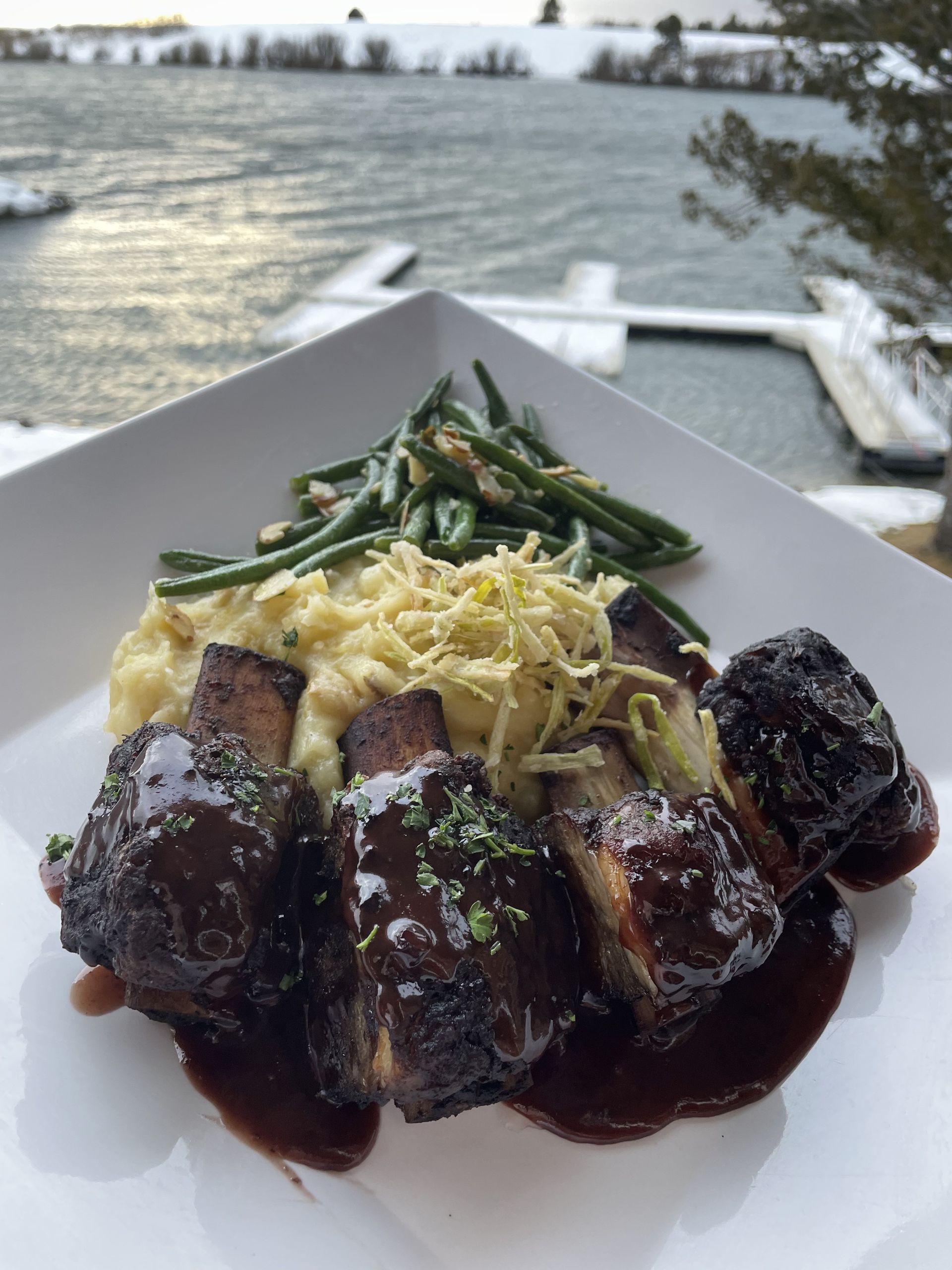 Panoramic Views of the Island Park Reservoir featuring High Country Cuisine.